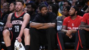 Âgé de 37 ans, Kevin Durant a terminé la saison régulière avec une moyenne de 26 points par match, la meilleure de son équipe. Son absence s’est clairement fait sentir lors du Game 1, Houston affichant un faible pourcentage de réussite aux tirs, inférieur à 40%, malgré 27 tentatives de tirs de plus que les Lakers.