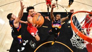 Collin Sexton (31,1 % rosterisé) était en pleine forme avec une série de quatre matchs remarquables avant de subir une contusion à la jambe inférieure qui l’a forcé à quitter prématurément le match de dimanche. Il avait inscrit 28 points en seulement 22 minutes avant sa sortie. Durant ces quatre matchs, il a maintenu une moyenne de 25,0 points. Si sa blessure est mineure, Sexton a clairement retrouvé son rythme offensif avec Chicago. En cas d’absence prolongée, Rob Dillingham (1,6 % rosterisé) pourrait être l’option « instant offense » à saisir.